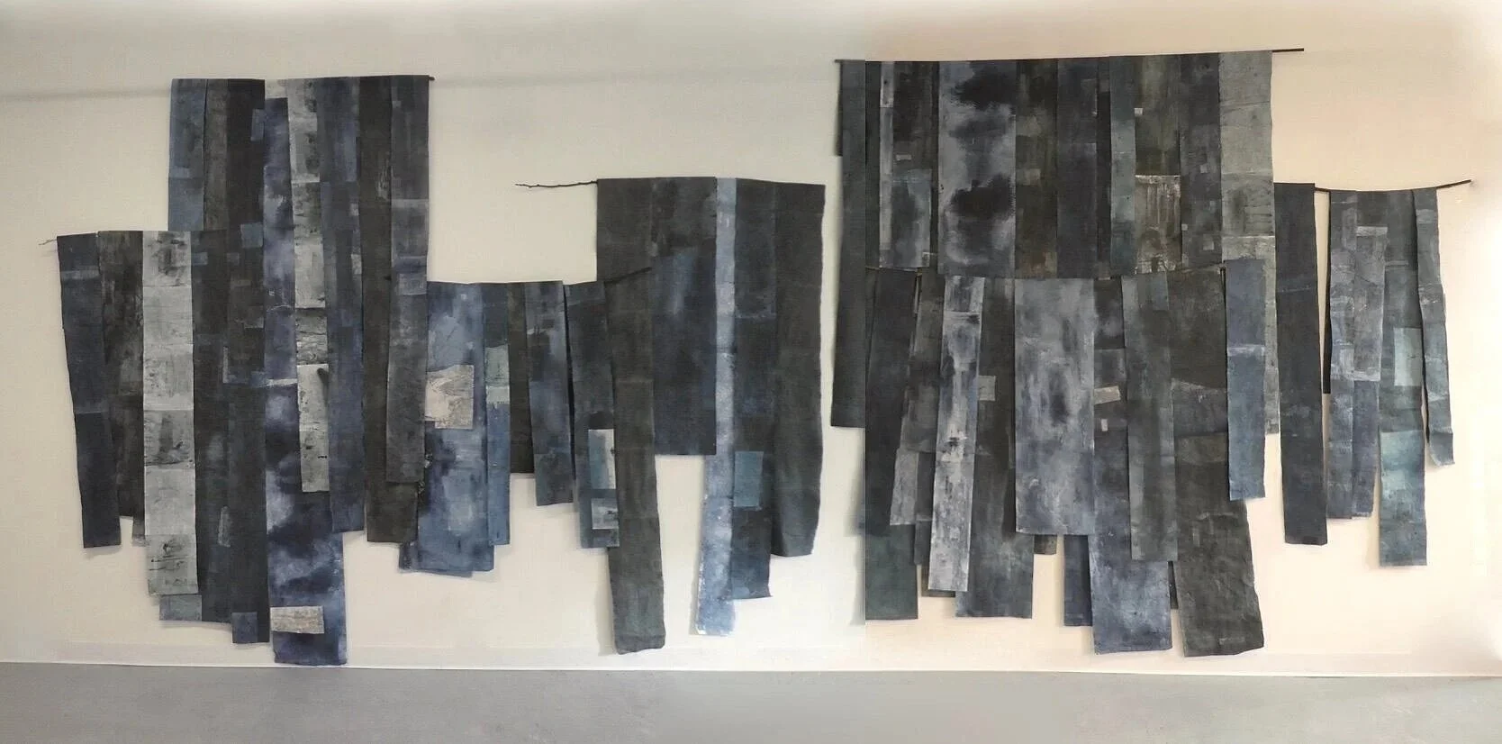 2024 のれん暖簾 - Noren (Curtain)Surface 1: Double-sided European, Asian and American recycled paintings, paper and fabric.
